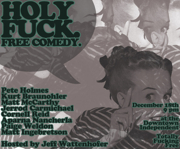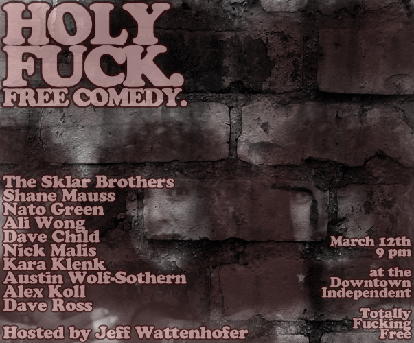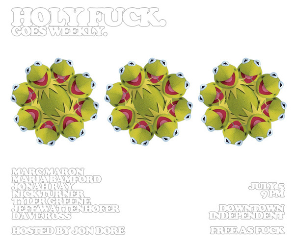 Louis CK performed on the show, as did Patton Oswalt and Aziz Ansari. Maria Bamford, Dana Gould, Marc Maron, The Sklar Brothers, Ron Lynch, Kyle Kinane, Eric Andre and Todd Glass became veritable regulars for a time, and many more came through for a night or two, including Demetri Martin, Margaret Cho, Natasha Leggero, Paul Scheer, Rob Huebel, Tig Notaro, and countless other great comics the world will soon fall in love with. The show was featured in the LA Times, LA Weekly, LAist, the Nerdist Podcast, and more.