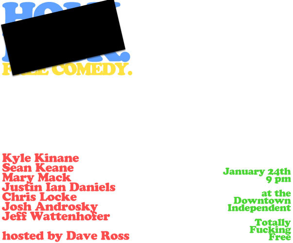 album and closed up shop. The last show ever, as recorded on Hi-8 in that video up there, was on July 2, 2013 and brought hundreds and hundreds of people to the Downtown Independent, Patton Oswalt, Marc Maron, dozens of other comics and an audience that kept the show going til 2am. It will be missed.